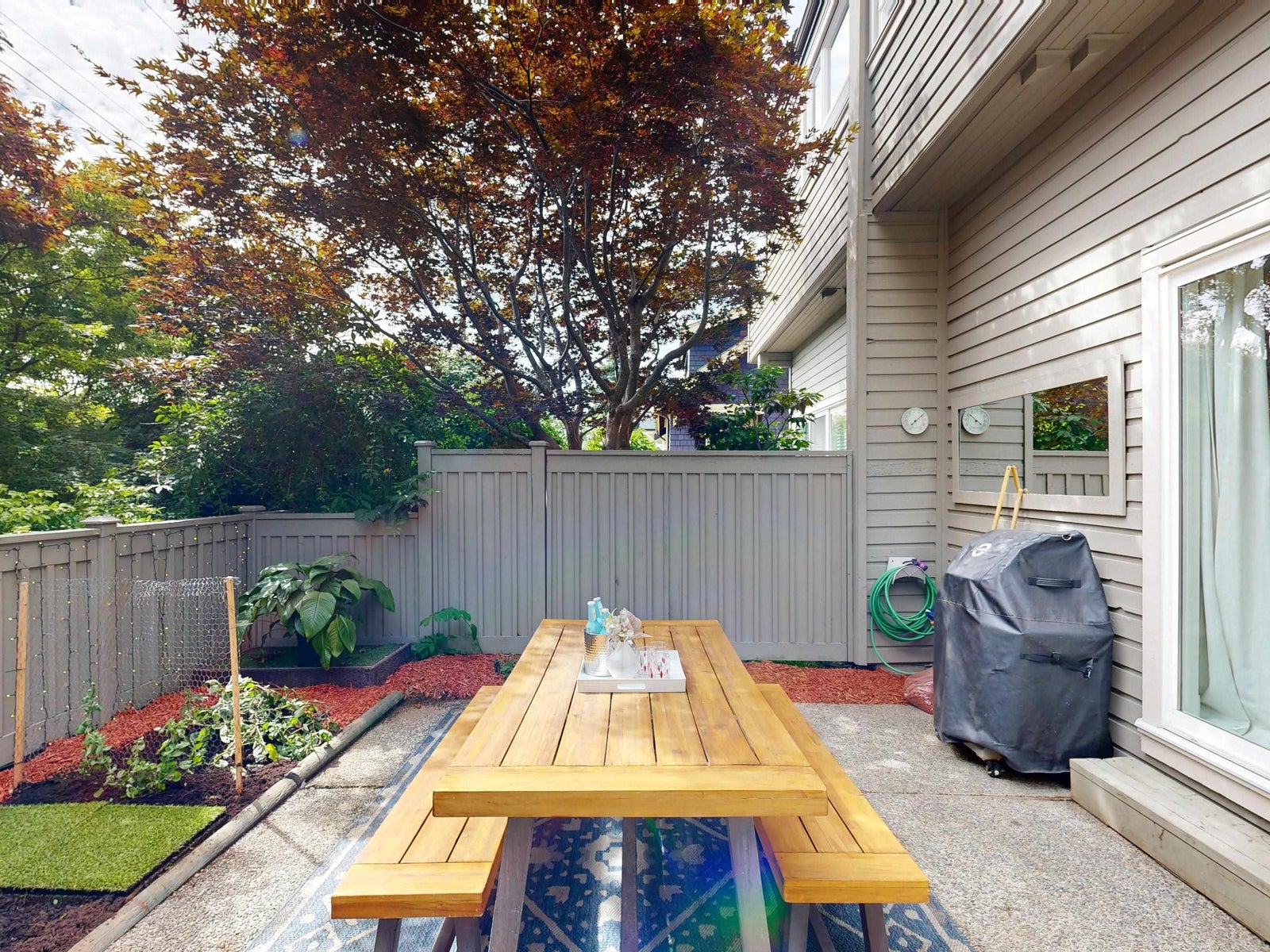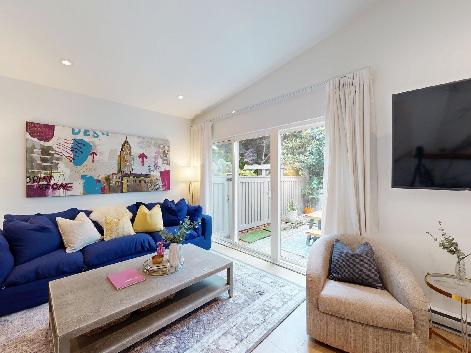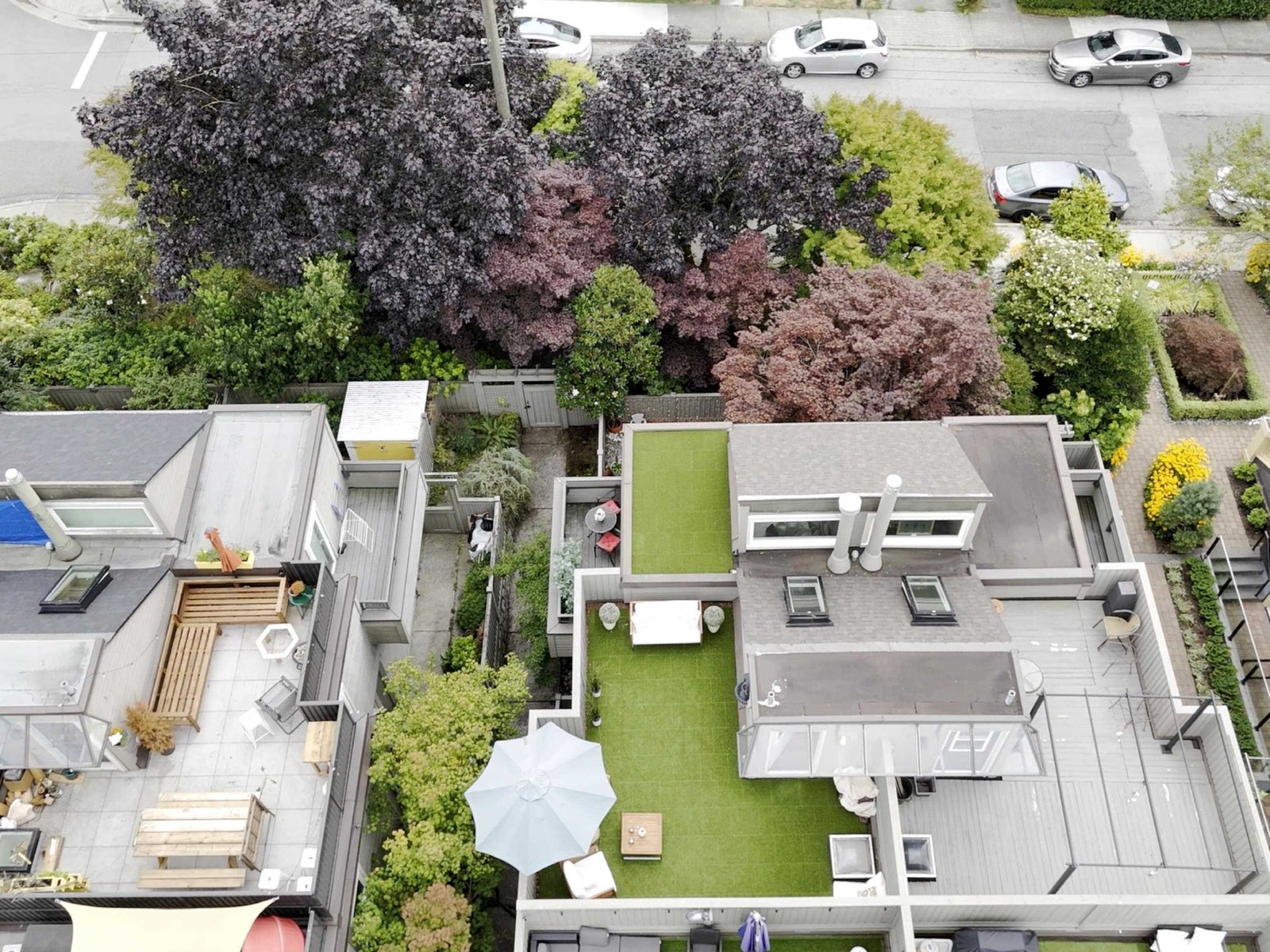 Welcome to this beautifully renovated Kits townhome in a boutique 4-unit complex, featuring a sunny south-facing patio, lush private garden, and a rooftop oasis—your perfect escape after a long day. The bright, airy living room offers a cozy gas fireplace and sliding doors to the landscaped outdoor space. The open-concept kitchen/dining area boasts a gas stove, ample cabinetry, and a convenient powder room. Upstairs you’ll find three spacious bedrooms, including a stunning primary with 13' ceilings, private balcony, and luxe finishes. Rainscreened in 2008 with newer roofs. Steps to Kits Beach, UBC, top schools, 4th Ave shops, trendy cafés, and transit. A rare find in one of Vancouver’s most coveted neighbourhoods!