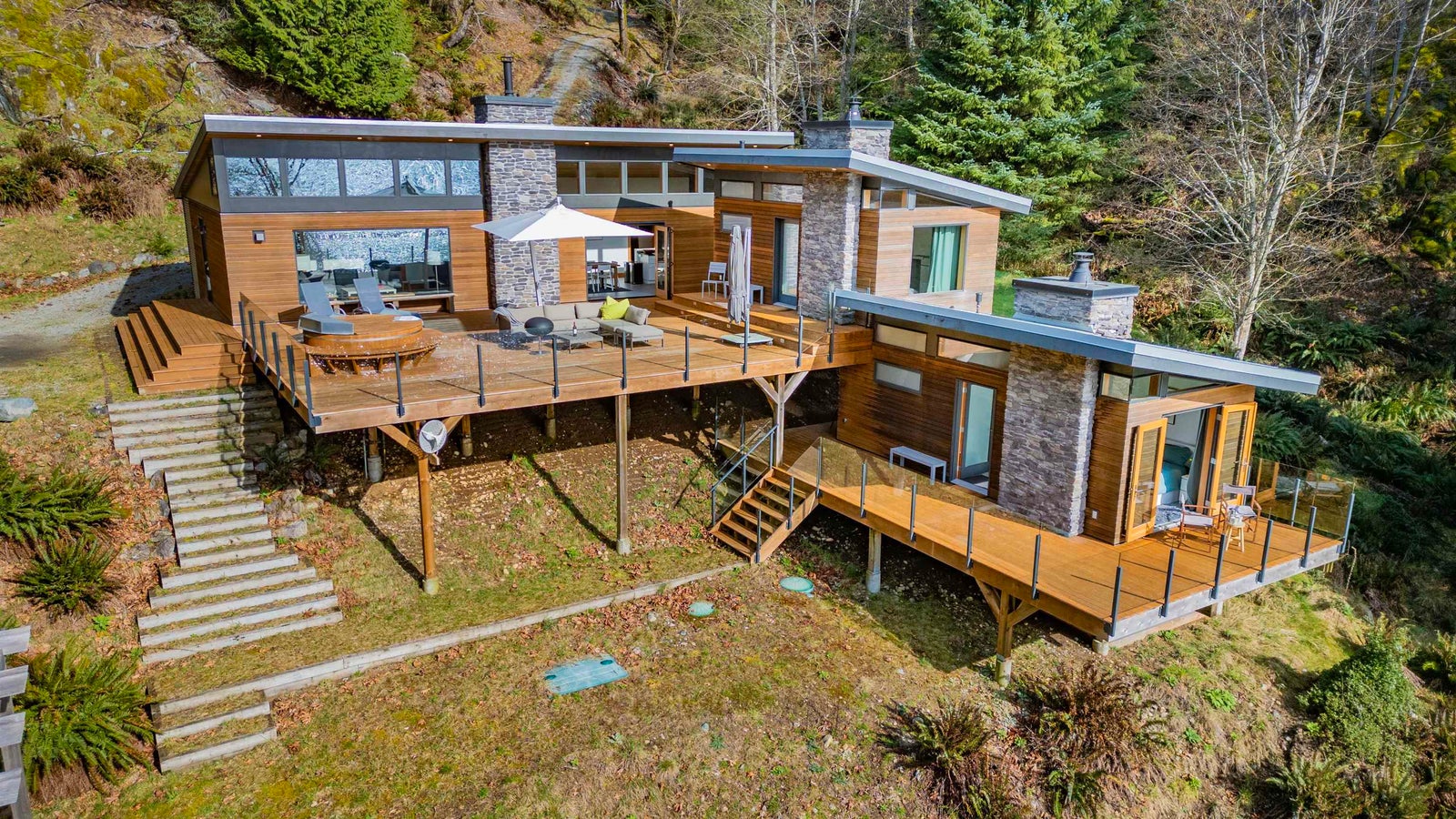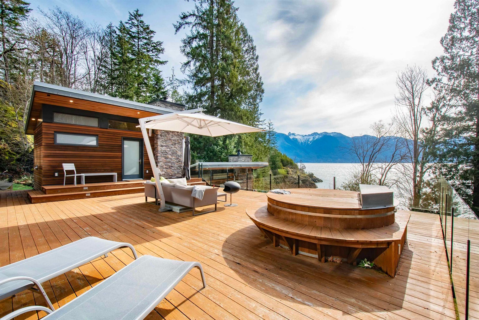 Waterfront SE facing beachfront sunny 9+ acre Oasis. This is the only property listed in Howe Sound with a beautiful, accessible sandy beach right in the front yard, and includes a mooring buoy. The main house features 3 beds with an ensuite 3 pc bath, a large laundry/mud room/3 pc bath off the kitchen, and great room area. Heated floors in the baths and TWO detached guesthouses, with a 3-piece bath and a Jotul fireplace. The large deck has a wood-fired or HW on-demand hot tub, and the yard features a yoga pavilion, beachside deck, and a raised garden bed area. This property has one of the largest solar panel /generator setups on Gambier Island and is located in the popular Brigade Bay community which features the use of a private marina and is a quick 15-minute trip to West Van.
