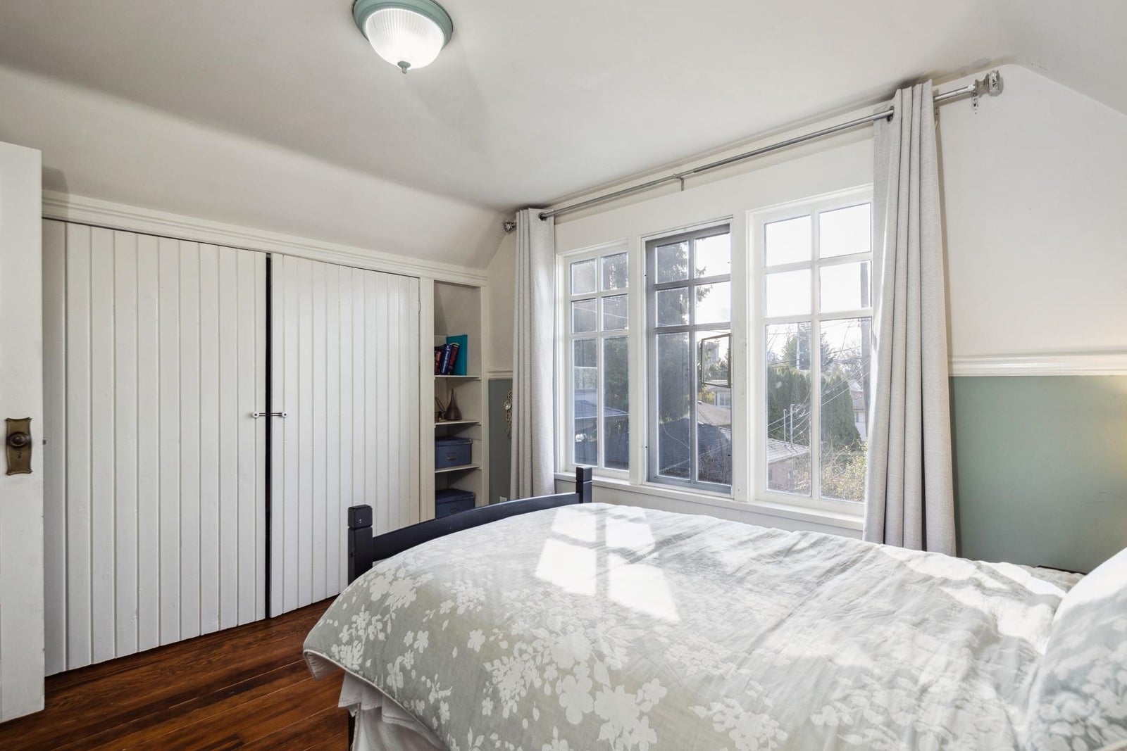 Lovingly maintained heritage home in Central Lonsdale, blending historic charm with modern updates. Known as the Cant Residence, this Edwardian home was built in 1911 and expanded in 1914. Notable features include a wrap-around verandah, sleeping porch, and original fir floors with millwork and wainscoting. The grand foyer leads to an open-plan living/dining area with a wood-burning fireplace and stained-glass window. The modern kitchen boasts stainless steel appliances, a large island, and opens to a sunny deck. Upstairs offers 3 bedrooms, a 4-piece bath, and a balcony with mountain views. The fenced backyard includes a grassy area, tree fort, and EV-equipped parking. Steps from Carson Graham Secondary, parks, and close to all Lonsdale amenities.